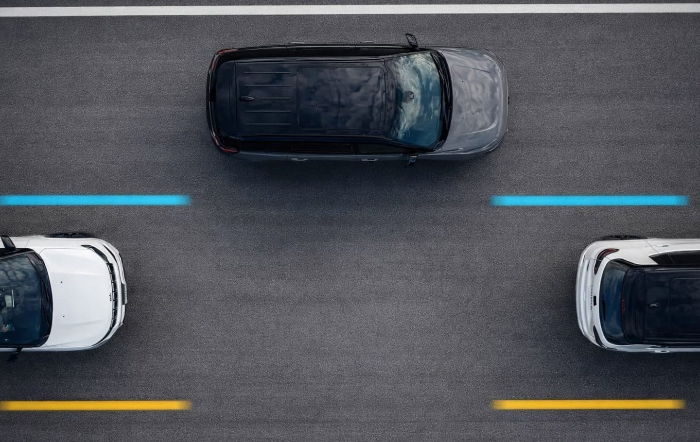 El asistente de centrado de carril mantiene el vehículo posicionado con precisión entre las líneas del carril, ajustando ligeramente la dirección cuando es necesario para garantizar una conducción más segura.