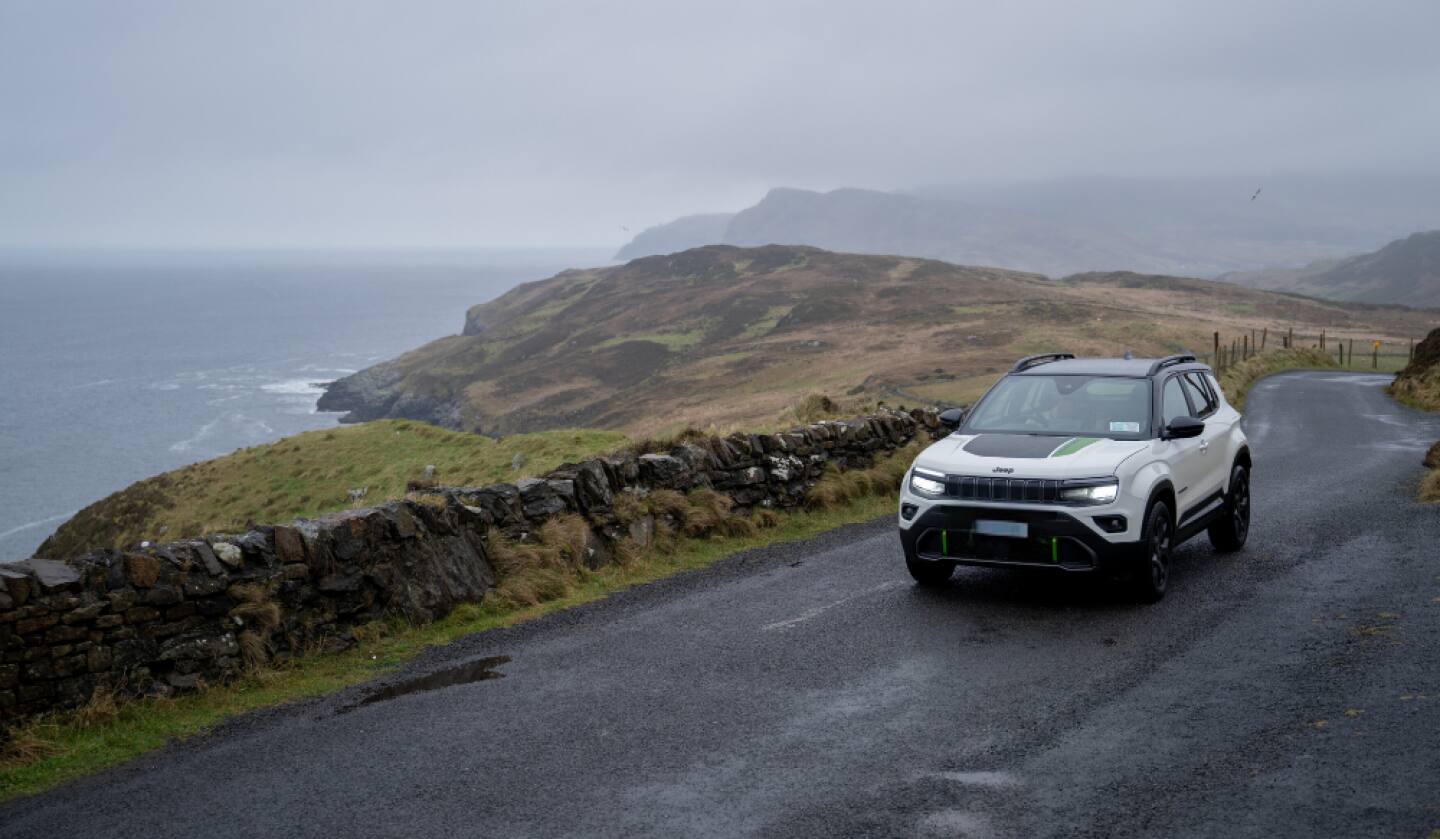 All prices and product options are based on current information at time of publication approval (01/24). Visit Jeepavenger.ie for latest information. *These figures were obtained after the battery had been fully charged. The Jeep® Avenger is a battery electric vehicle requiring mains electricity for charging. Figures shown are for comparability purposes. Only compare electric range figures with other cars tested to the same technical procedures. These figures may not reflect real life driving results, which will depend upon a number of factors including the starting charge of the battery, accessories fitted (post-registration), variations in weather, driving styles and vehicle load. Jeep® Avenger 1st EDITION Full Electric: CO2 emissions (weighted, combined) (g/km): 0. Electric energy consumption (weighted, combined) (kWh/100 km): 15,9; electric range 385-390 km (combined cycle). Values are calculated with the WLTP procedure (EU Regulation 2018/1832). The values indicated for energy consumption and electric range are measured by the manufacturer on pre-approval tests, according to the WLTP procedure (EU Regulation 2018/1832), and may be subject to modification depending upon the definitive homologation. The values indicated are for comparative purposes. Only compare CO2 and electric range figures with other cars tested to the same technical procedures. The Jeep® Avenger is a battery electric vehicle requiring These figures may not reflect real life driving results and the actual electric energy consumption values may be strongly different and may vary depending upon the conditions of use and on various factors such as: options, frequency of electric recharge per travelled kilometres, ambient temperature, driving style, speed, total weight, use of certain equipment (air conditioning, heating, radio, navigation, lights etc., tire types and conditions, road conditions, external climatic conditions, etc. Prices, fuel consumption and CO2 emission figures are correct as of 1 st June 2024 and published to our dealer network which may be subject to change. Colours of vehicles shown may not match the actual colour.